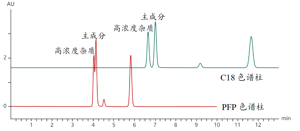 C18和PFP色譜柱的分離結果對比圖